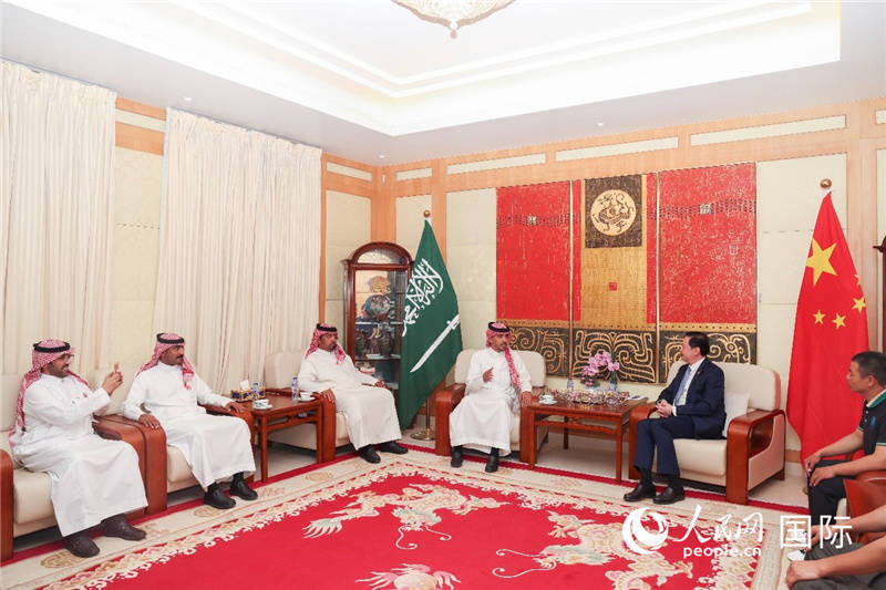 中国驻沙特大使常华同沙特见义勇为青年及中国公民交流慰问。人民网记者 任皓宇摄
